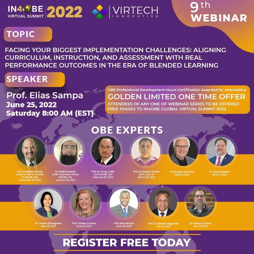 We have the pleasure to inform you that the International Network for Outcome Based Education (IN4OBE), Bangladesh Chapter at United International University (UIU) is organizing the sixth session of an international webinar series virtually on May 7, 2022 8 AM EST.