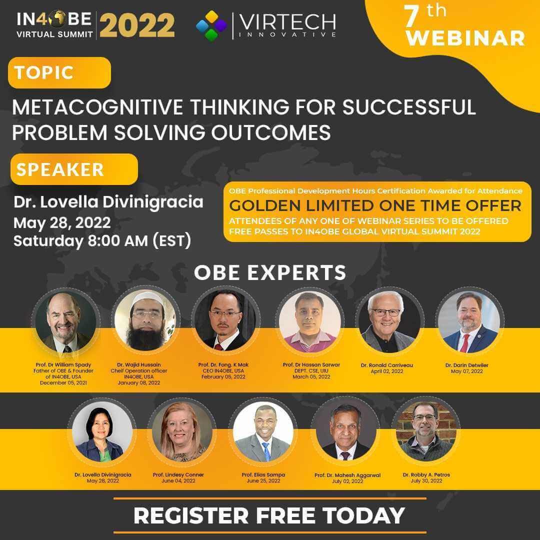 We have the pleasure to inform you that the International Network for Outcome Based Education (IN4OBE), Bangladesh Chapter at United International University (UIU) is organizing the sixth session of an international webinar series virtually on May 7, 2022 8 AM EST.